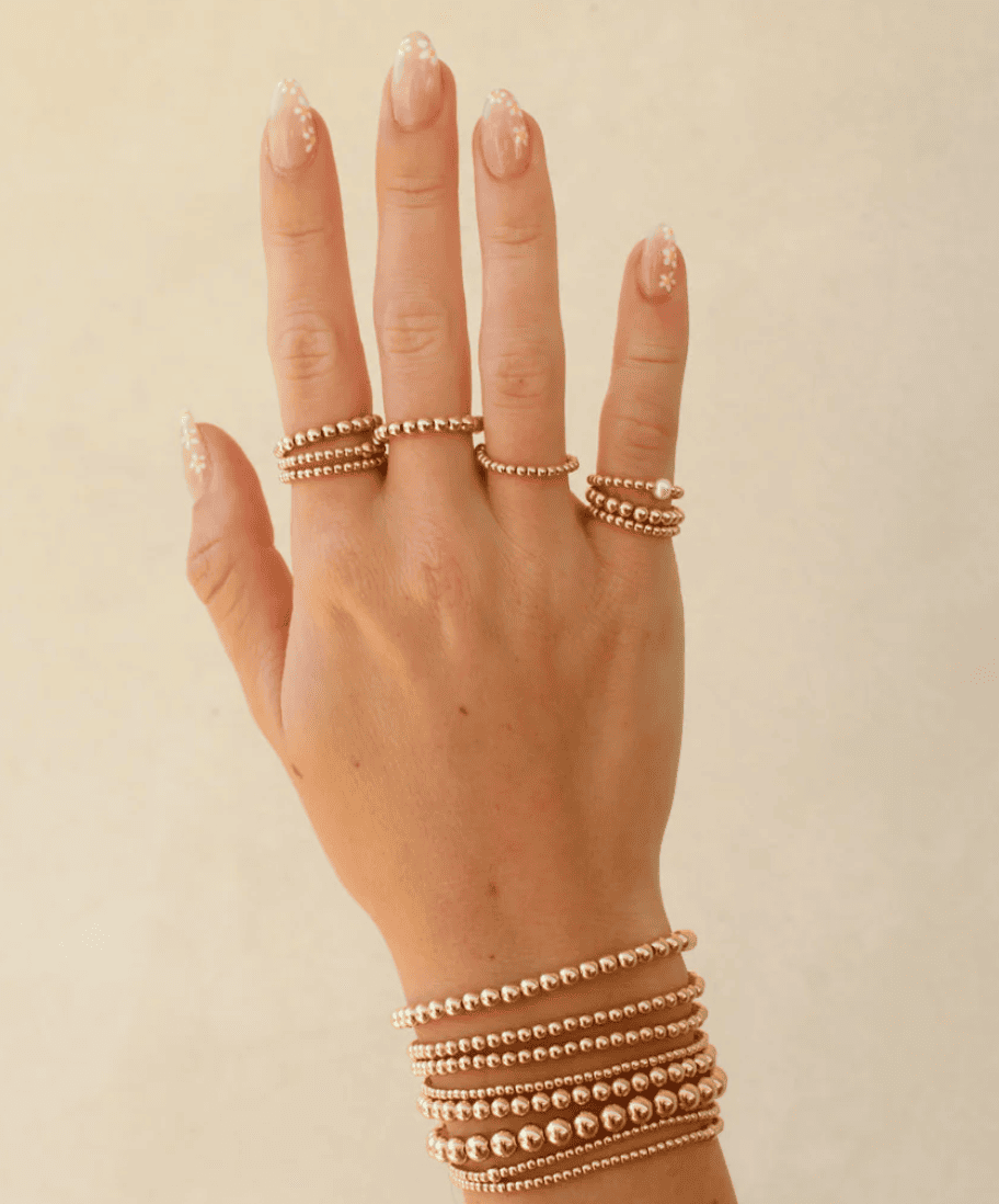 Las pulseras están ensartadas en un delicado y exclusivo cordón elástico. Cada pieza fabrica cuidadosamente con el cordón ideal según el tamaño de la cuenta, la gema y el ajuste deseado.