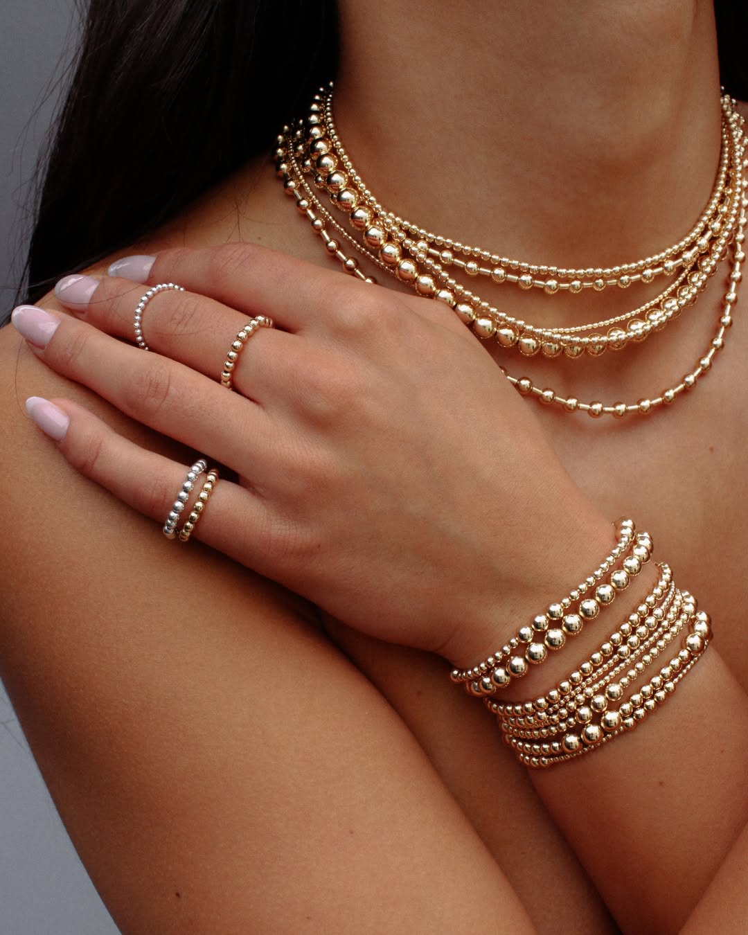 Las pulseras están ensartadas en un delicado y exclusivo cordón elástico. Cada pieza fabrica cuidadosamente con el cordón ideal según el tamaño de la cuenta, la gema y el ajuste deseado.