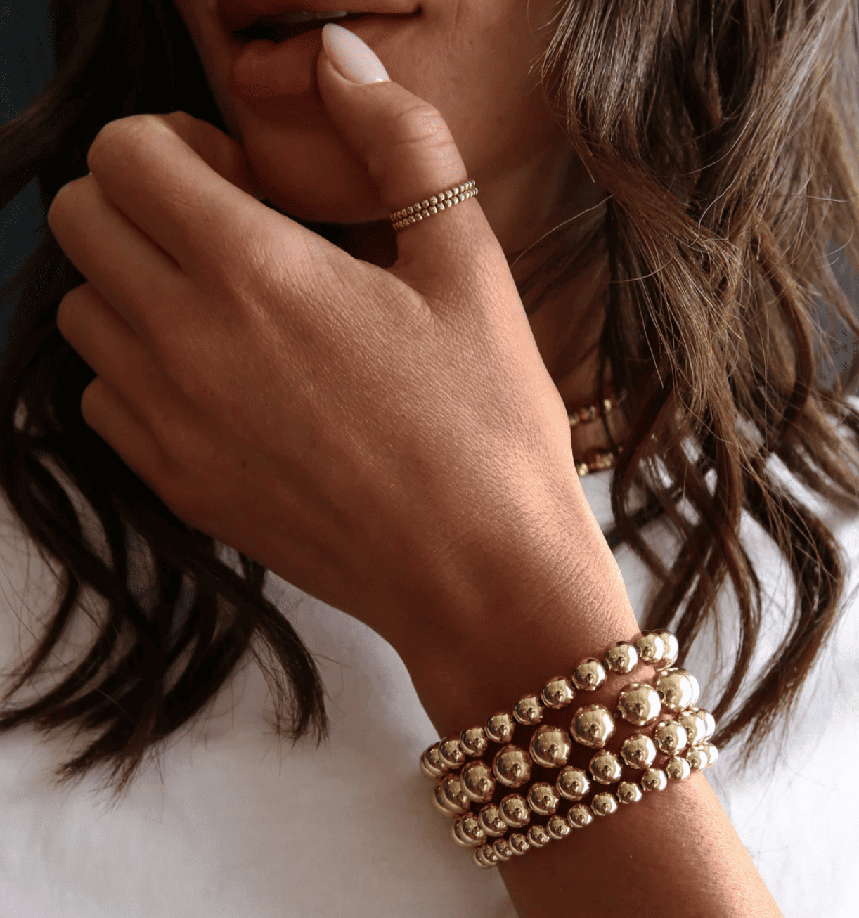 Las pulseras están ensartadas en un delicado y exclusivo cordón elástico. Cada pieza fabrica cuidadosamente con el cordón ideal según el tamaño de la cuenta, la gema y el ajuste deseado.