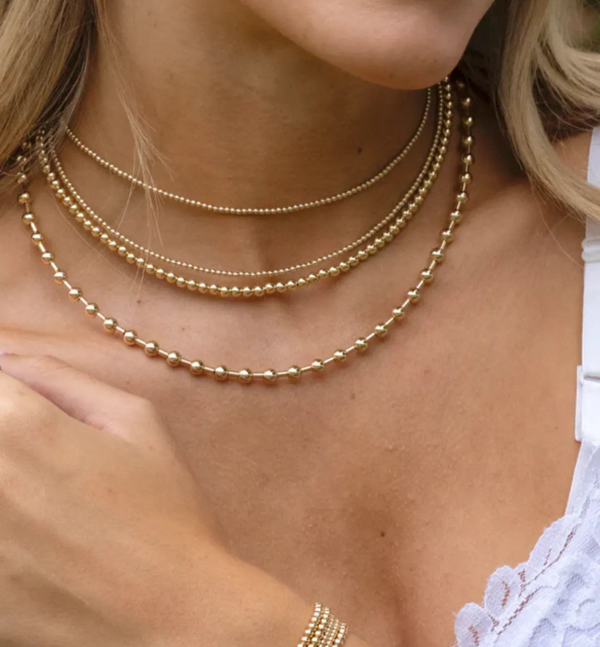 No se deslustra y es resistente al agua. Tamaño: 14-16” cada collar tiene una cadena de extensión de 2”