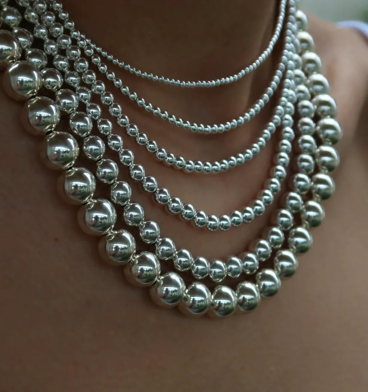 Plata esterlina con cierre de langosta. No se deslustra y es resistente al agua. Tamaño: 14-16” cada collar tiene una cadena de extensión de 2”