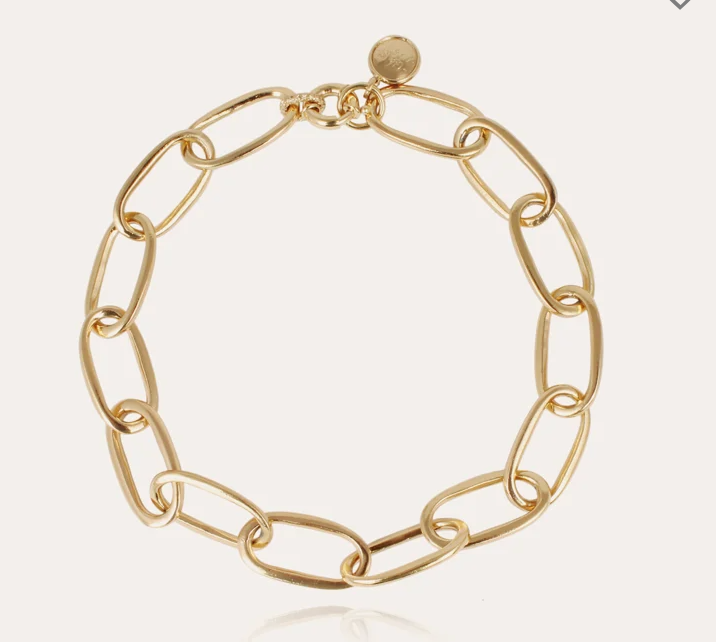 Collar chapado en oro con cadena de eslabones ovalados grandes. Talla ajustable.