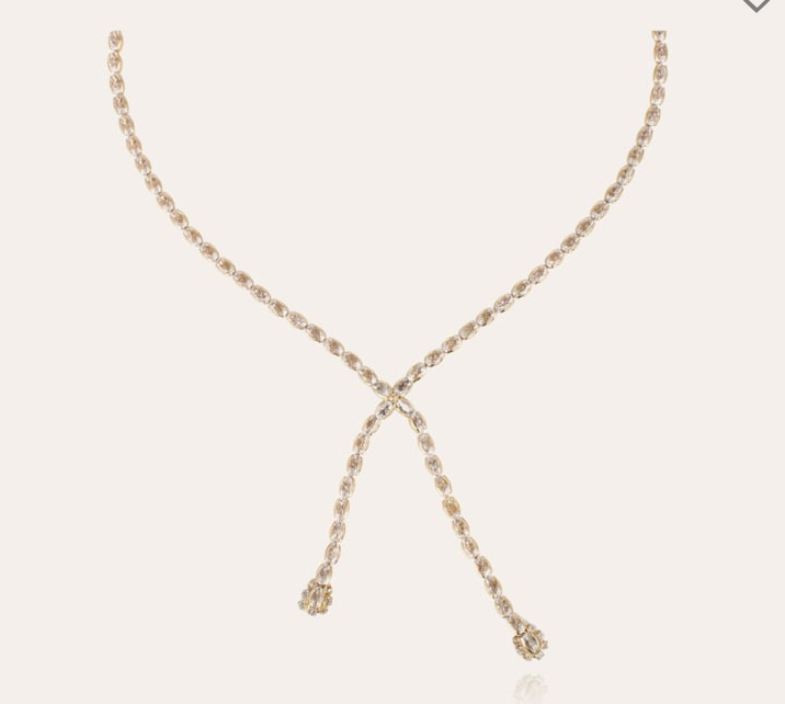Collar bañado en oro, compuesto por un elegante río de circonitas de colores cristal y flores en los extremos. Largo: 41,5 cm - Ancho: 0,2 cm