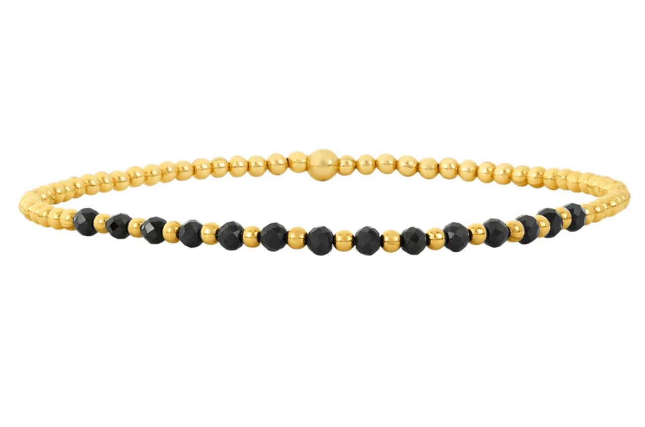 Cuentas rellenas de oro amarillo de 14 k con  2,25" de patrón de piedra preciosa de espinela negra.