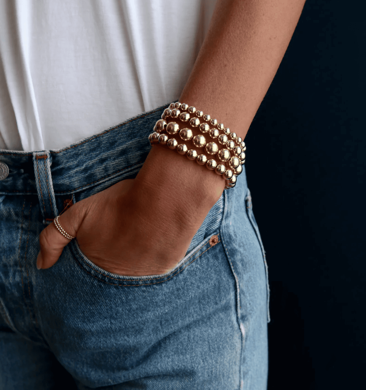 Las pulseras están ensartadas en un delicado y exclusivo cordón elástico. Cada pieza fabrica cuidadosamente con el cordón ideal según el tamaño de la cuenta, la gema y el ajuste deseado.