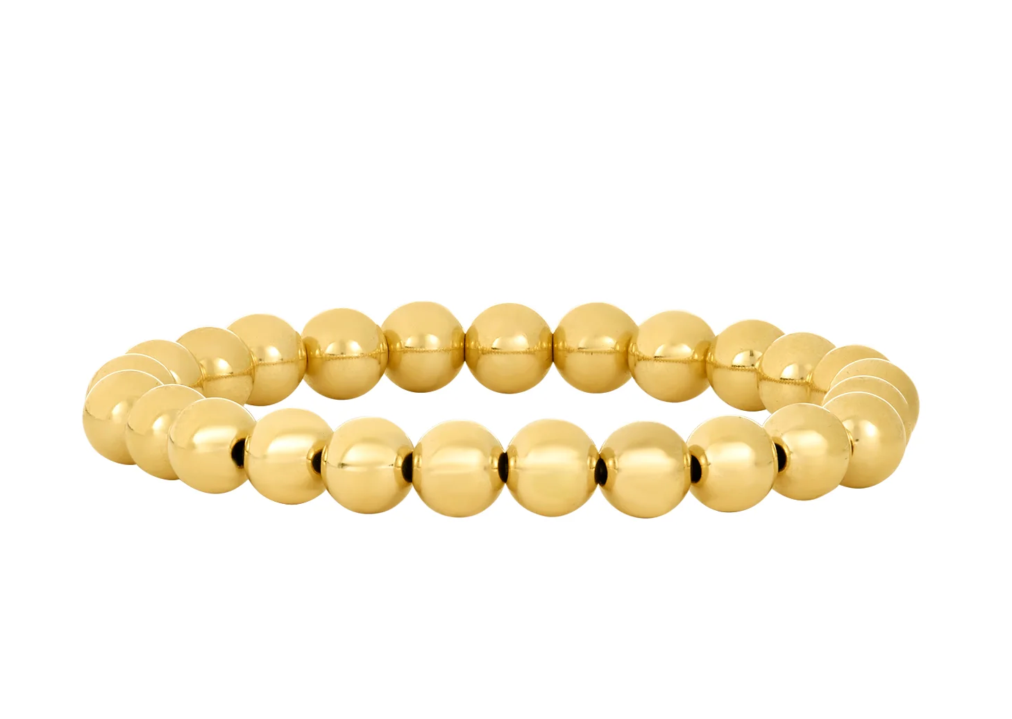 No se deslustra y es resistente al agua. Ensartado en un cordón elástico, que ofrece un ligero estiramiento.