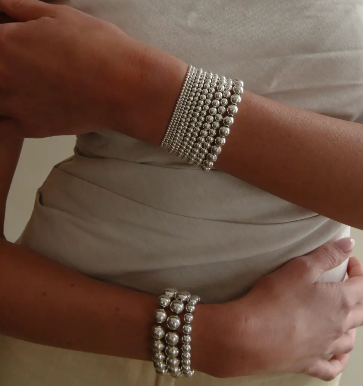Las pulseras están ensartadas en un delicado y exclusivo cordón elástico. Cada pieza fabrica cuidadosamente con el cordón ideal según el tamaño de la cuenta, la gema y el ajuste deseado.