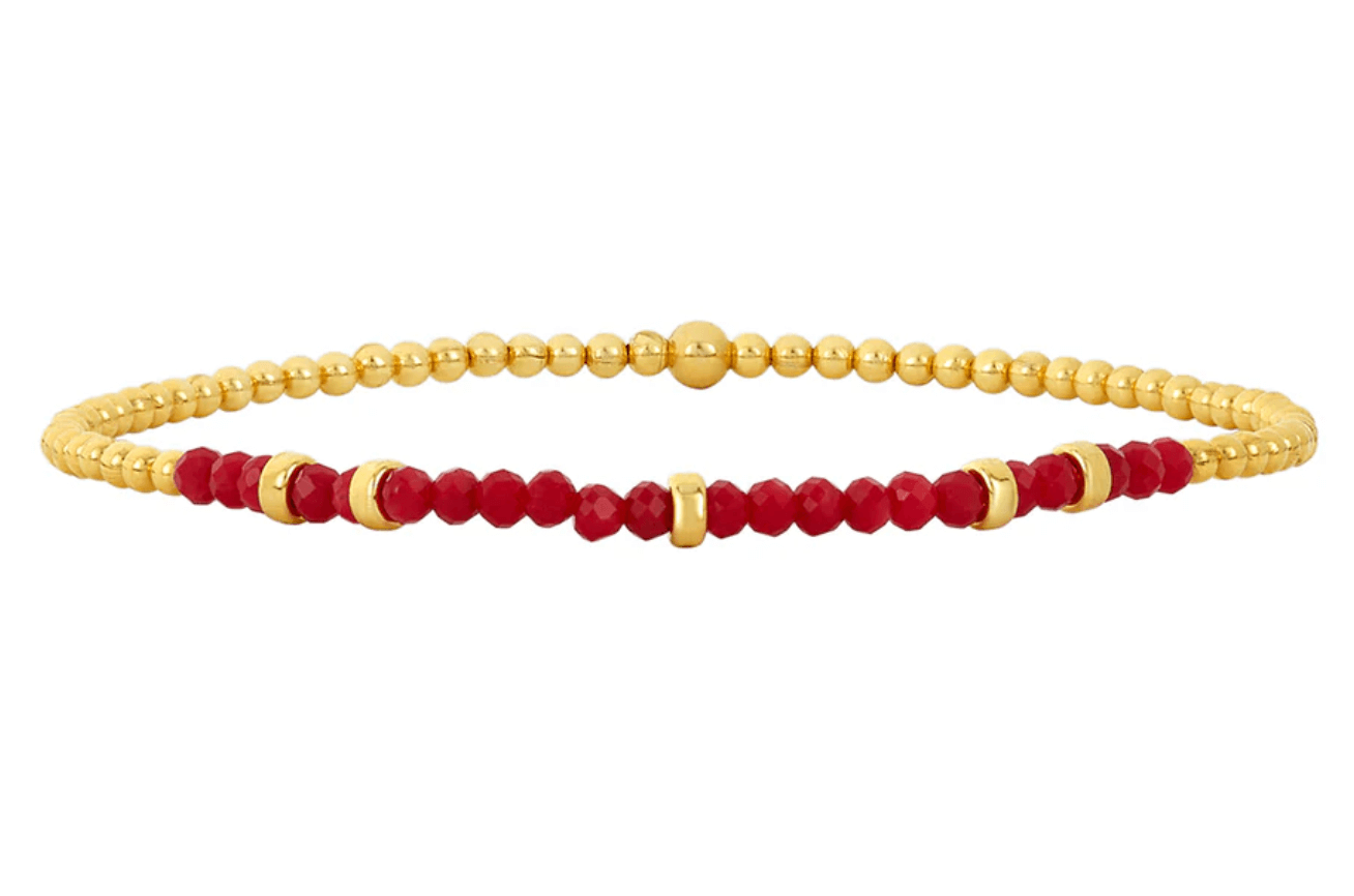 Las pulseras están ensartadas en un delicado y exclusivo cordón elástico. Cada pieza fabrica cuidadosamente con el cordón ideal según el tamaño de la cuenta, la gema y el ajuste deseado.