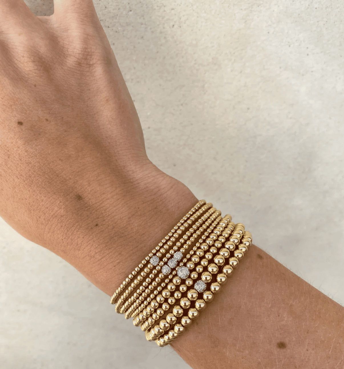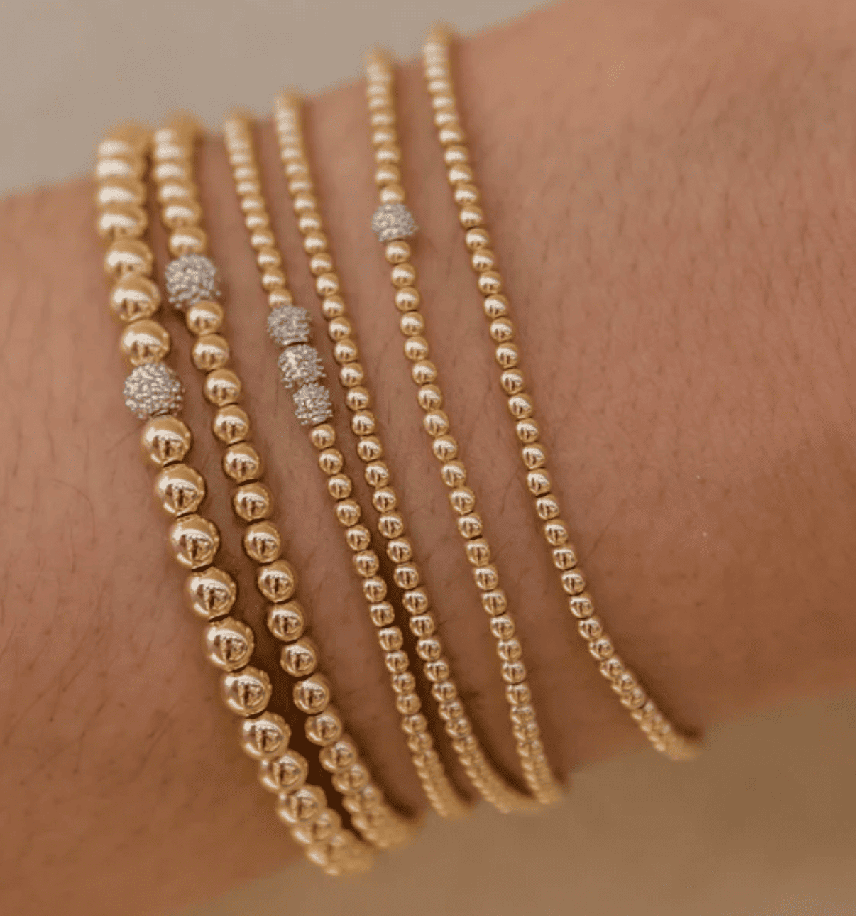 Las pulseras están ensartadas en un delicado y exclusivo cordón elástico. Cada pieza fabrica cuidadosamente con el cordón ideal según el tamaño de la cuenta, la gema y el ajuste deseado.