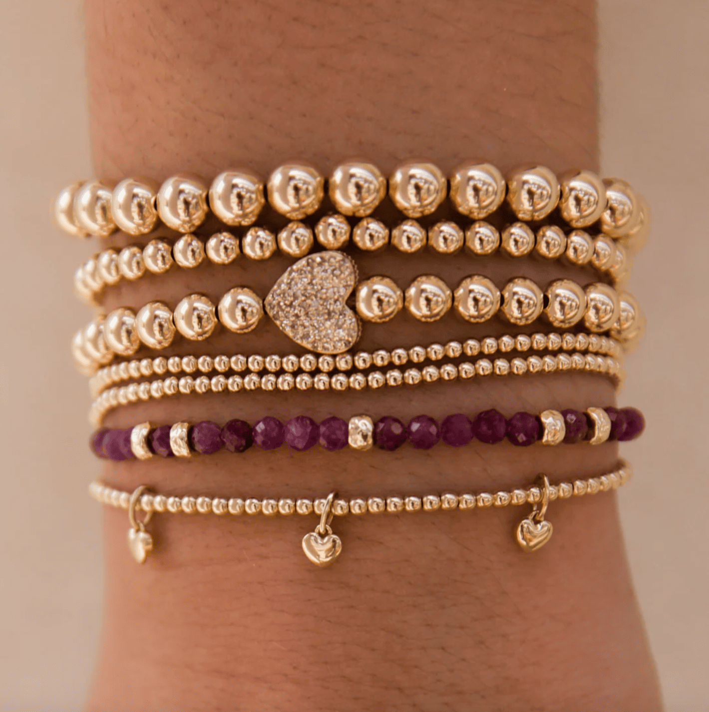 Las pulseras están ensartadas en un delicado y exclusivo cordón elástico. Cada pieza fabrica cuidadosamente con el cordón ideal según el tamaño de la cuenta, la gema y el ajuste deseado.