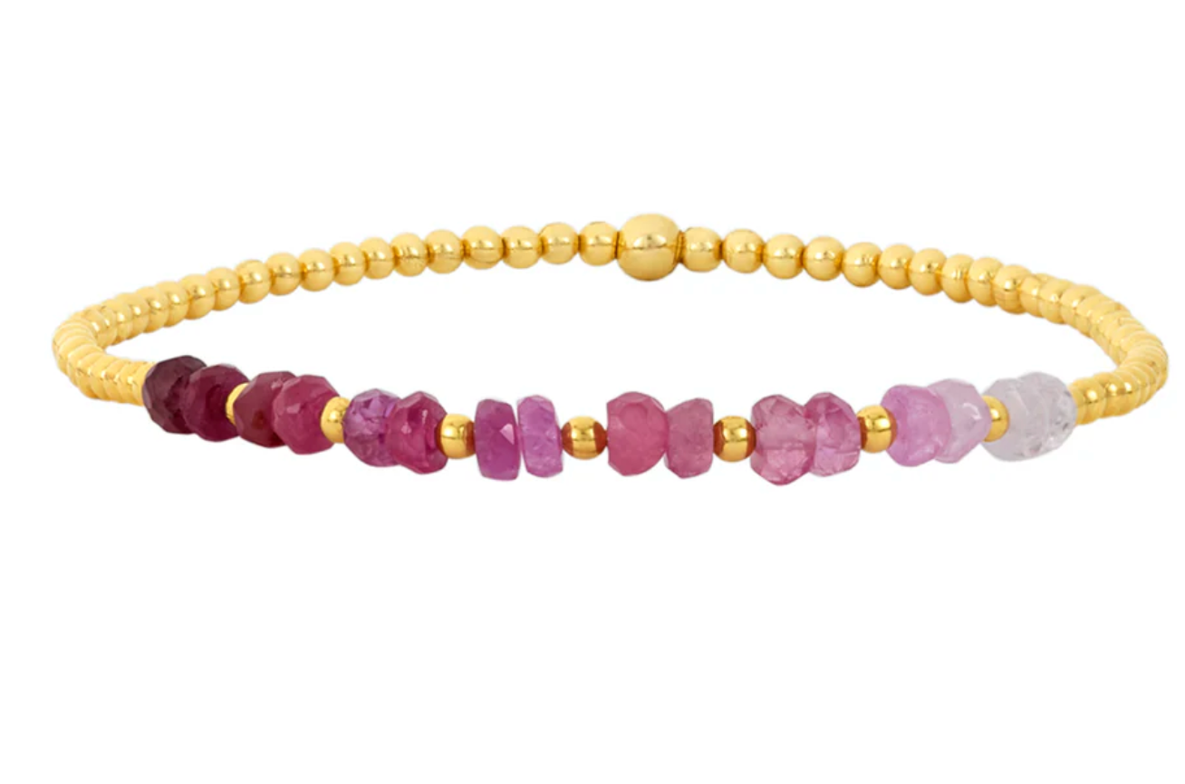 Cuentas rellenas de oro amarillo de 14 k con un patrón de piedras preciosas de zafiro de 2" en tono Pink Sugar Ombré No se deslustra y es resistente al agua.