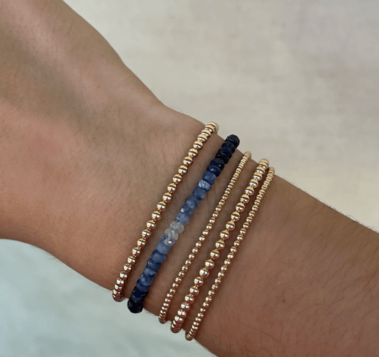 Las pulseras están ensartadas en un delicado y exclusivo cordón elástico. Cada pieza fabrica cuidadosamente con el cordón ideal según el tamaño de la cuenta, la gema y el ajuste deseado.