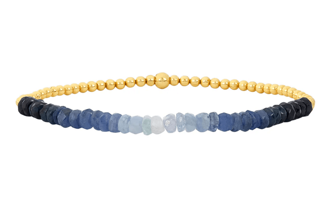 Cuentas rellenas de oro amarillo de 14 k con 2,25" de piedras preciosas ombré de zafiro azul.
